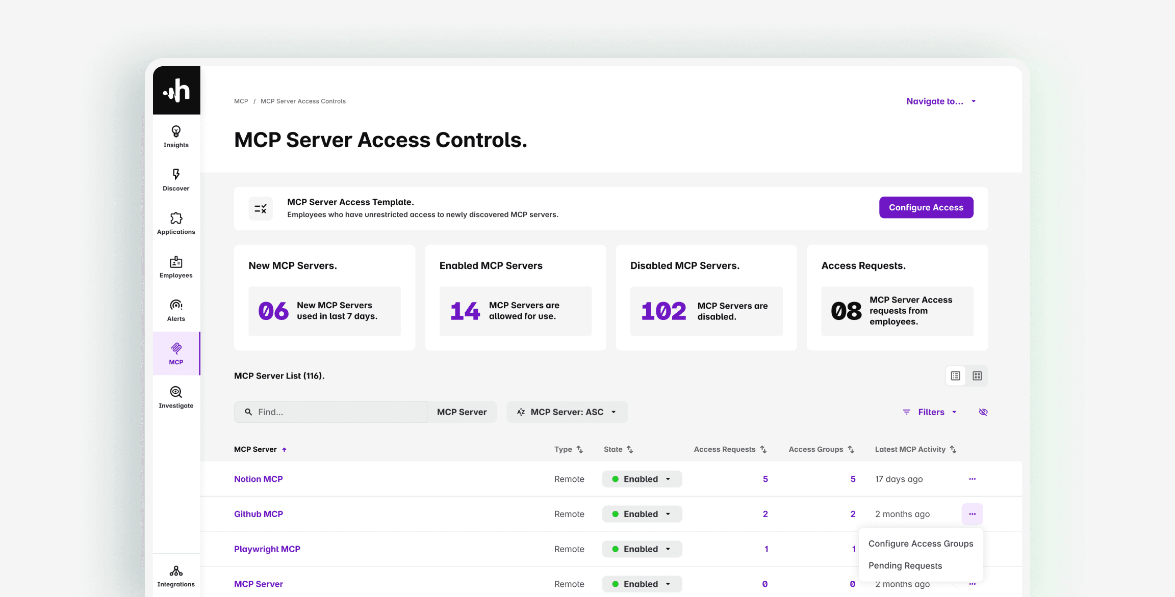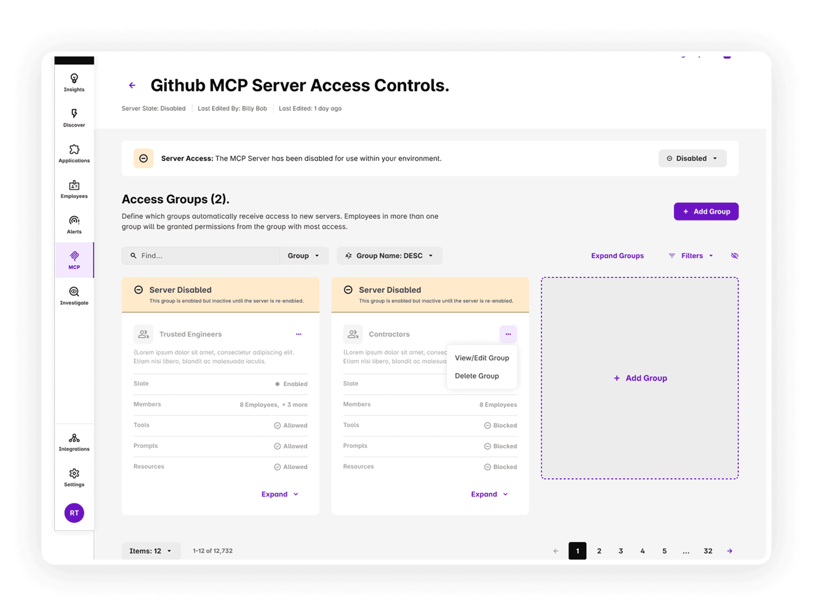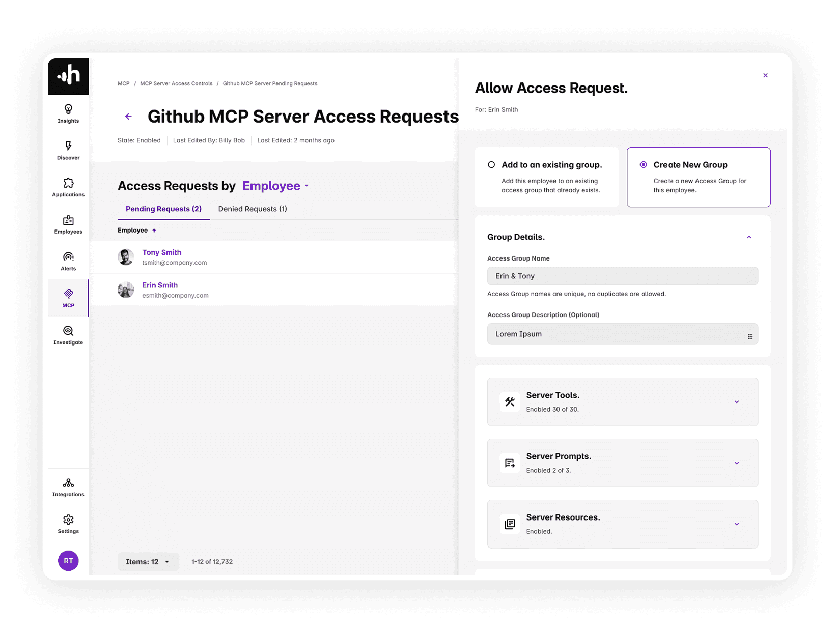 Configure groups of Employees who have custom access to MCP