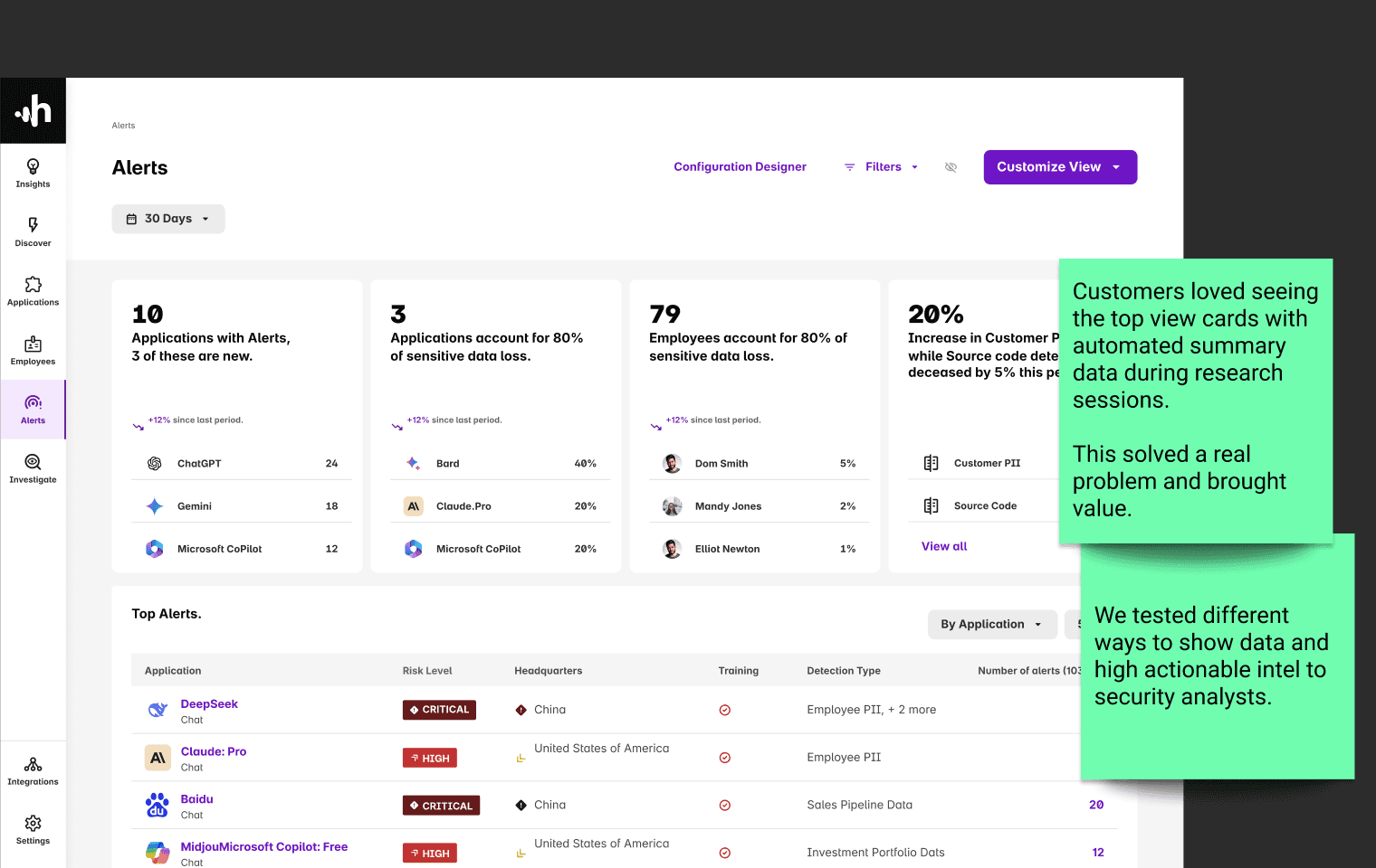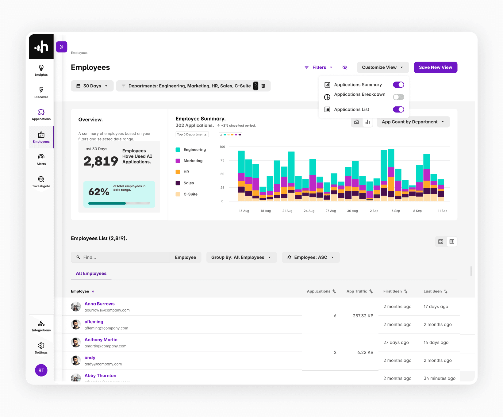 Promotes secure AI adoption by surfacing trends and anomalies.